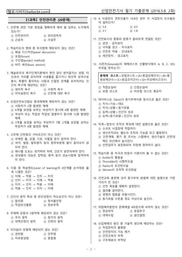 헬로시비티_산업안전기사 2회차_2016년05월08일 기출문제_hellocbt.pdf